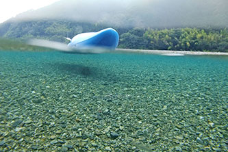 仁淀ブルーを探すのになぜ川を下るのか?それはカヤックやカヌー、ラフトボートが川の流れとひとつになれる乗り物で、ゆえに仁淀川の表情を細やかに感じられるから。例えば水の色。淵では深い緑、浅い早瀬ではクリスタルな透明で、荒瀬の大波はギラリとした銀色など、川を下りながら一期一会の色彩に包まれながら下る楽しさを体験できます。